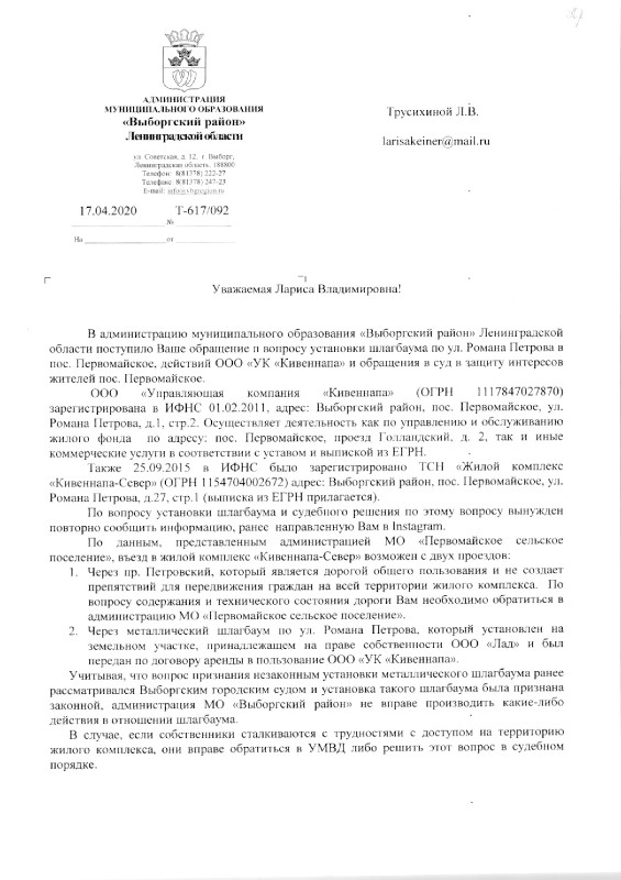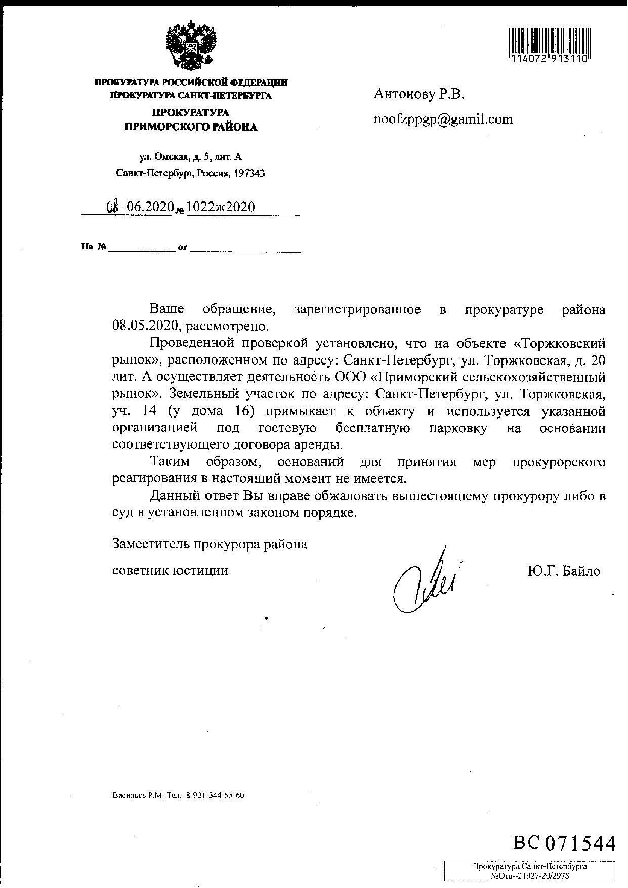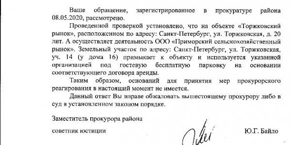Номер жалобы:65486 Тип жалобы:Прочее Название объекта:Чупрунов Павел Вячеславович Регион:Санкт-Петербург город Город:Санкт-Петербург Адрес:ул. Торжковская, д. 16 Описание жалобы:Полагаю, что у дома по адресу г.Санкт-Петербург, Торжковская улица, дом 16, литера А (далее - 16Д) произошло самовольное занятие земельного участка и незаконное размещение нестационарного объекта на земельном участке. Терзают смутные сомнения что Торжковкий рынок (далее - ТР), по адресу ул. Торжковская, 20 лит А1, самовольно занял земельный участок который относится к 16Д и незаконно разместил парковку на земельном участке, с этой целью ТР "оформил" себе дорогу между ТР и 16Д.
