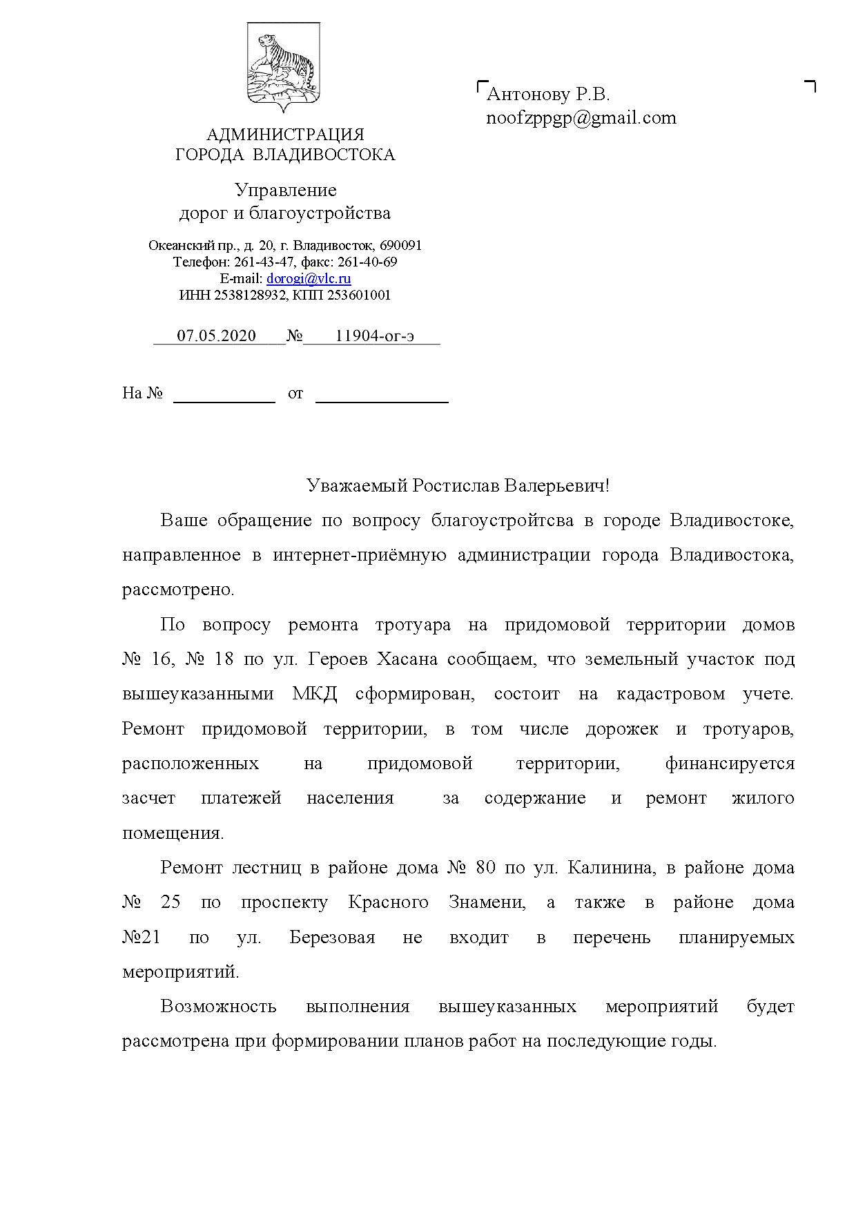 Номер жалобы:65420 Тип жалобы:Городская среда Название объекта: Регион:Приморский край Город:Владивосток Адрес:улица Калинина, 80 Описание жалобы:разрушенная лестница, ведущая к аптеке Статус: