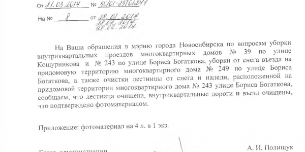 Номер жалобы:14891 Тип жалобы:Иные проблемы ЖКХ Название объекта:Управляющая Компания Город:Новосибирск Адрес:Новосибирск, улица Бориса Богаткова, 245 Описание жалобы:Объявления на фасаде дома Статус: