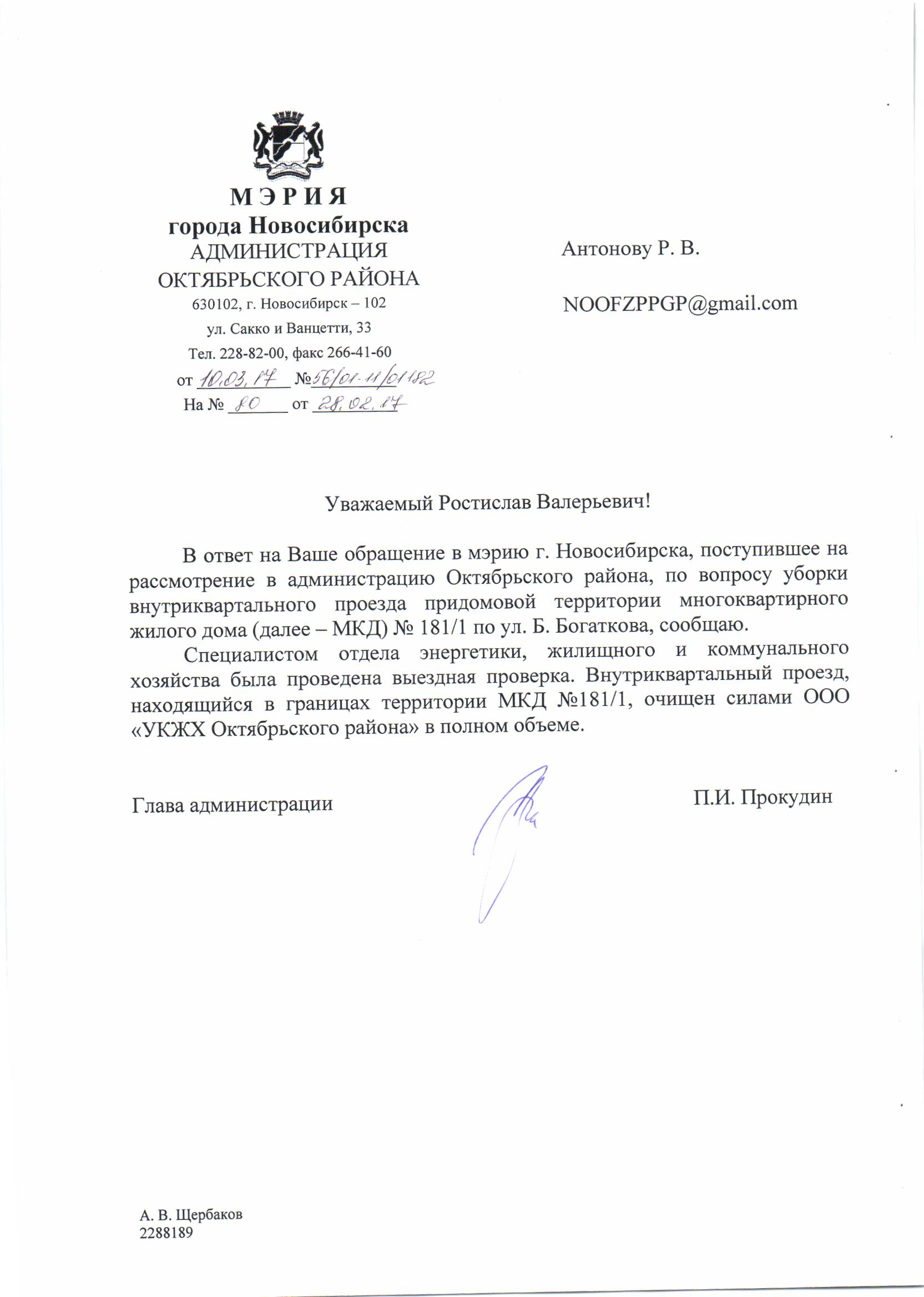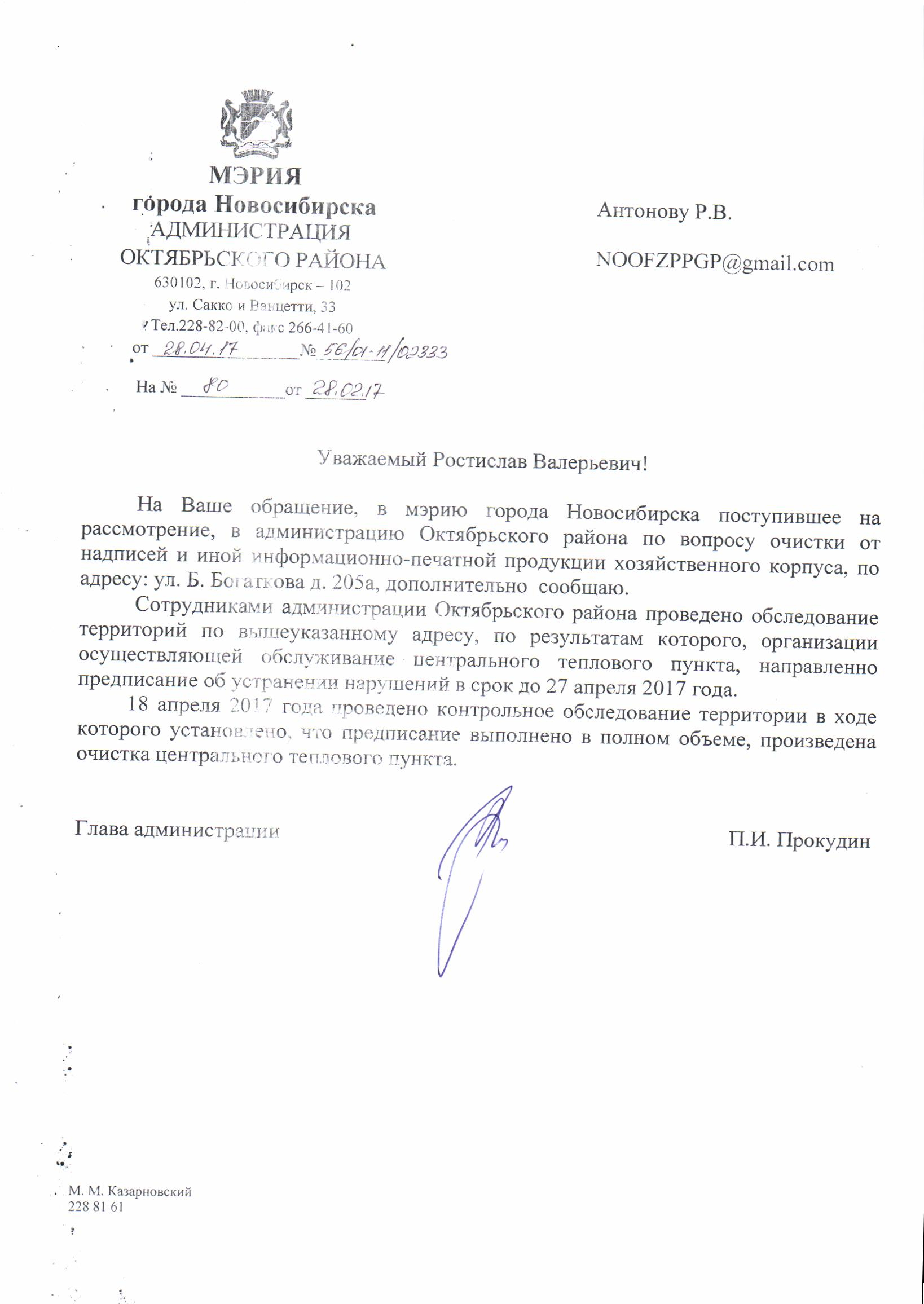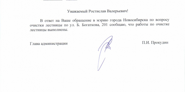 Номер жалобы:14849 Тип жалобы:Иные проблемы ЖКХ Название объекта:Управляющая Компания Город:Новосибирск Адрес:Новосибирск, улица Бориса Богаткова, 205А Описание жалобы:Надписи и объявления в неположенном месте Статус: