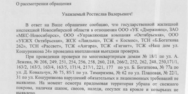 Номер жалобы:14826 Тип жалобы:Иные проблемы ЖКХ Название объекта:Управляющая Компания Город:Новосибирск Адрес:Новосибирск, улица Бориса Богаткова, 163/4 Описание жалобы:Снег на крыше дома Статус: