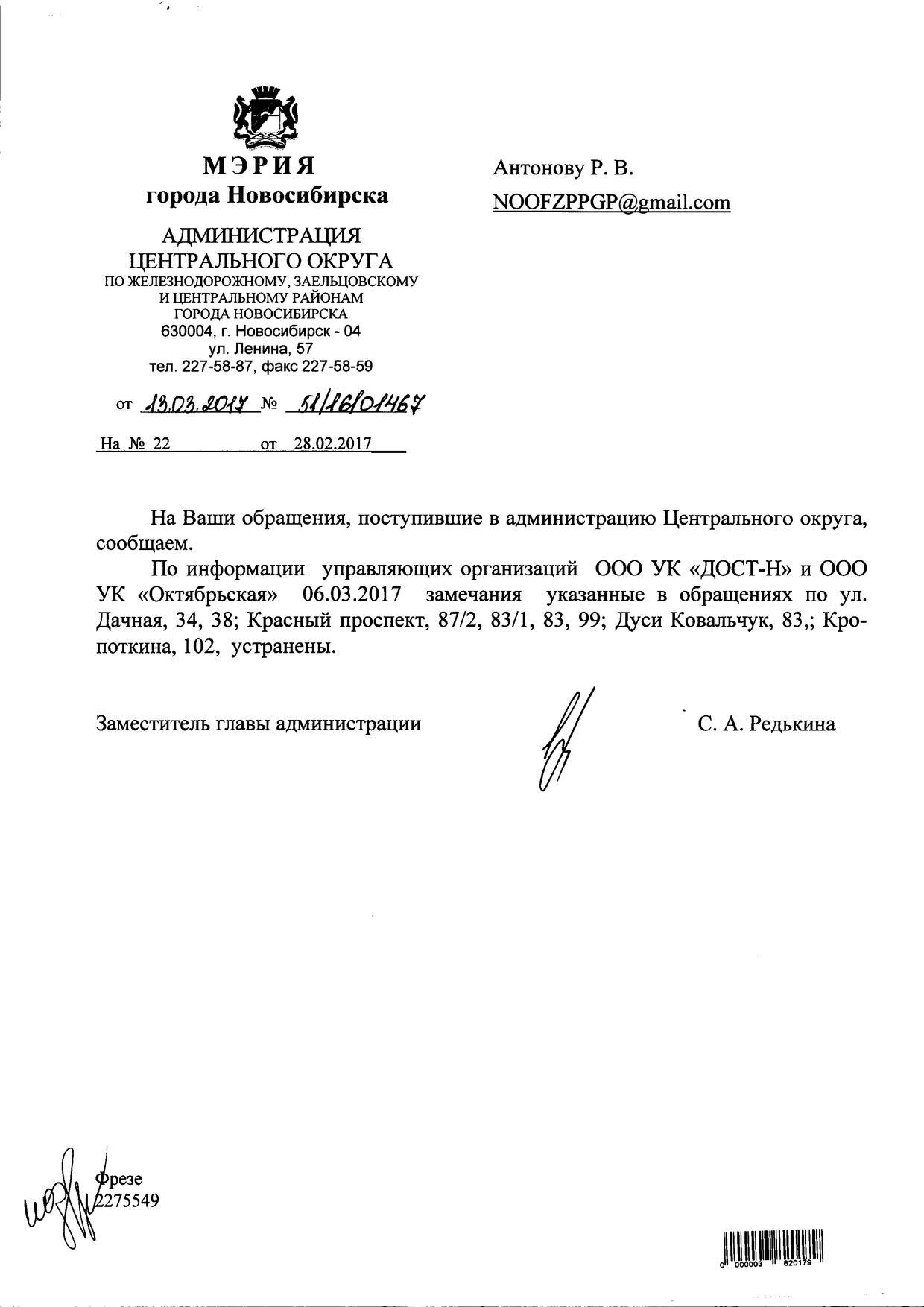 Номер жалобы:14687 Тип жалобы:Иные проблемы ЖКХ Название объекта:Управляющая Компания Город:Новосибирск Адрес:Новосибирск, улица Дачная, 36 Описание жалобы:Надписи на хоз корпусе Статус: