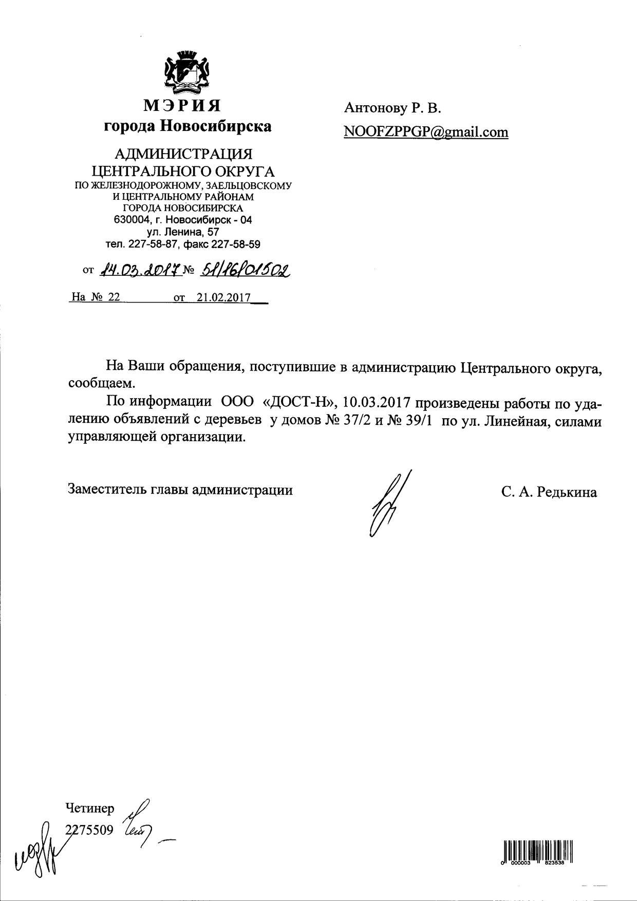 Номер жалобы:14580 Тип жалобы:Иные проблемы ЖКХ Название объекта:Управляющая Компания Город:Новосибирск Адрес:Новосибирск, улица Линейная, 37 Описание жалобы:Объявления на деревьях во дворе дома Линейная 37 Статус: