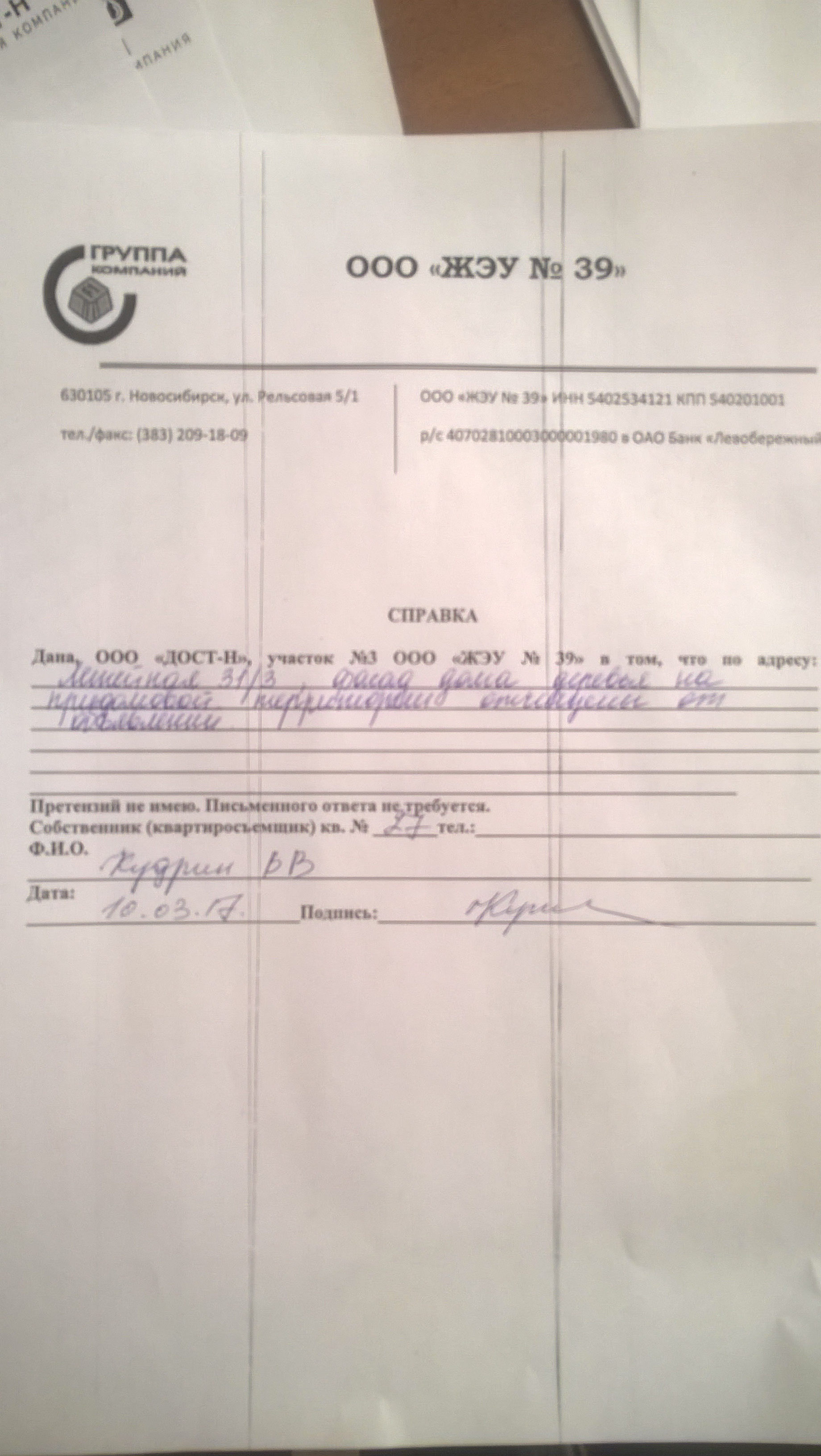 Номер жалобы:14571 Тип жалобы:Иные проблемы ЖКХ Название объекта:Управляющая Компания Город:Новосибирск Адрес:Новосибирск, улица Линейная, 35 Описание жалобы:Объявления в неположенном месте Статус: