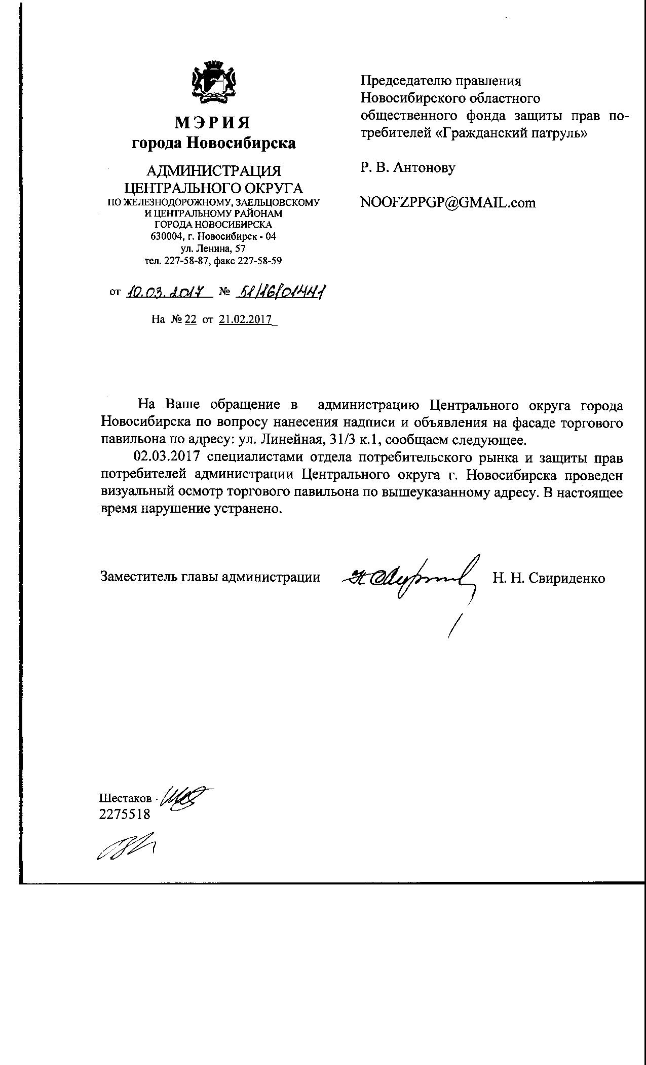 Номер жалобы:14561 Тип жалобы:Иные проблемы ЖКХ Название объекта:Управляющая Компания Город:Новосибирск Адрес:Новосибирск, улица Линейная, 31/3 Описание жалобы:Объявления в неположенном месте Статус: