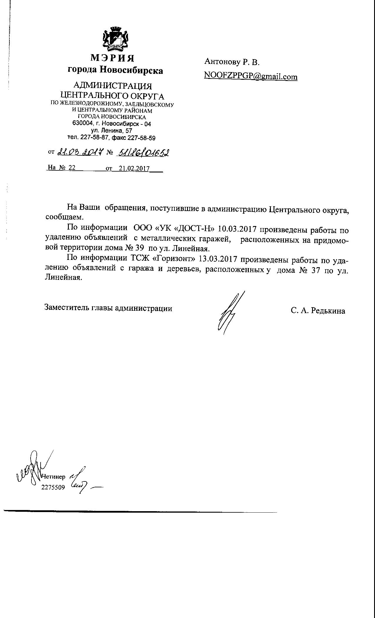 Номер жалобы:14566 Тип жалобы:Иные проблемы ЖКХ Название объекта:Управляющая Компания Город:Новосибирск Адрес:Новосибирск, улица Линейная, 33 Описание жалобы:Линейная 33 рядом гаражи ,на которых реклама и разные номера Статус: