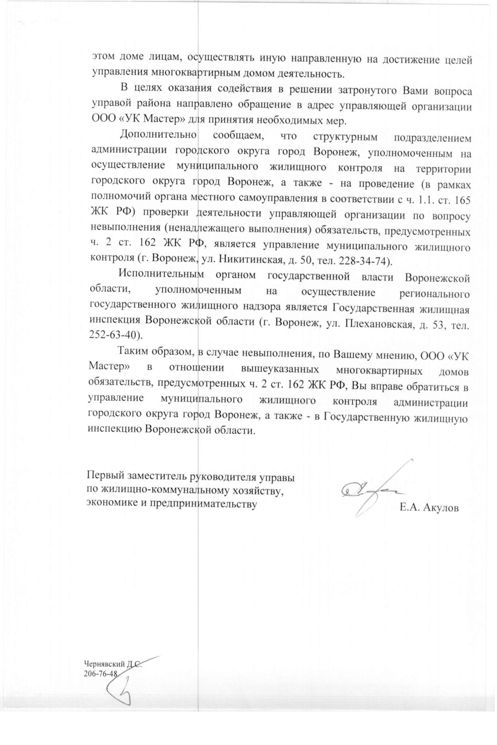 Номер жалобы:14410 Тип жалобы:Иные проблемы ЖКХ Название объекта:Ук Регион:Воронежская область Город:Воронеж Адрес:9-го Января ул., 204 Описание жалобы:Обьявл а неп месте Статус: