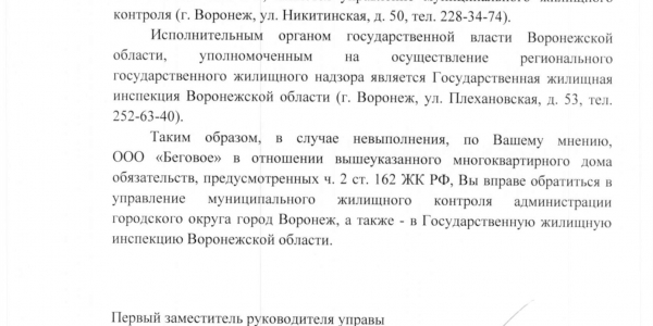 Номер жалобы:14331 Тип жалобы:Иные проблемы ЖКХ Название объекта:Ук Регион:Воронежская область Город:Воронеж Адрес:ул. Беговая, 18 Описание жалобы:Надписи на стенах мкд Статус: