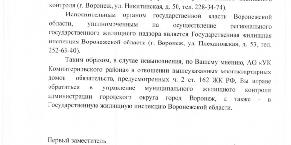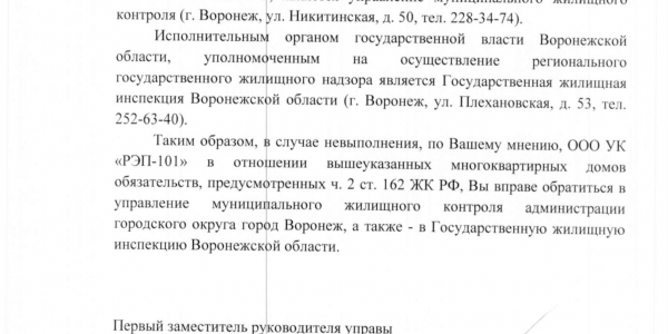 Номер жалобы:14341 Тип жалобы:Иные проблемы ЖКХ Название объекта:Ук Регион:Воронежская область Город:Воронеж Адрес:Московский просп., 46 Описание жалобы:Надписи и обьявления Статус:
