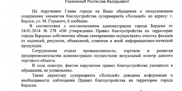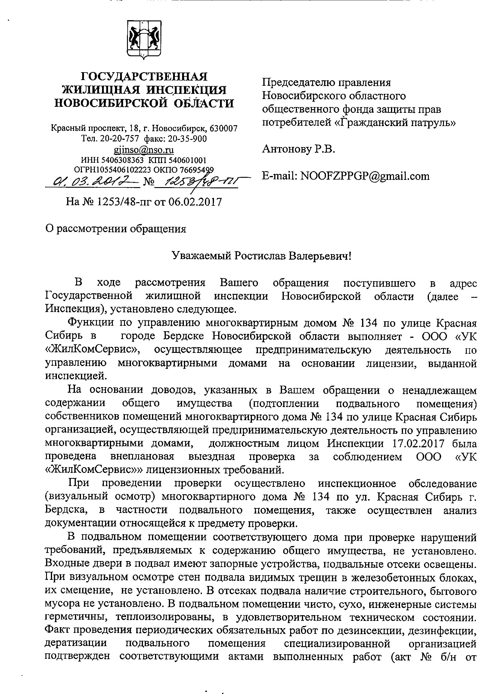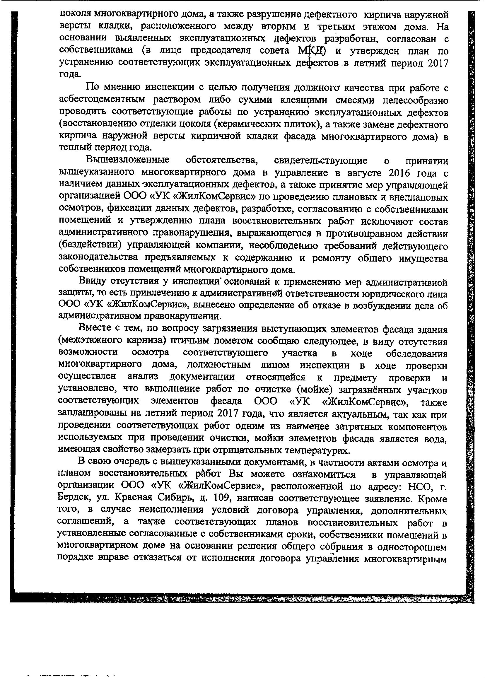 Номер жалобы:14008 Тип жалобы:Иные проблемы ЖКХ Название объекта:Ук Регион:Новосибирская область Город:Бердск Адрес:ул. Горького, 6 Описание жалобы:Надписи Статус: