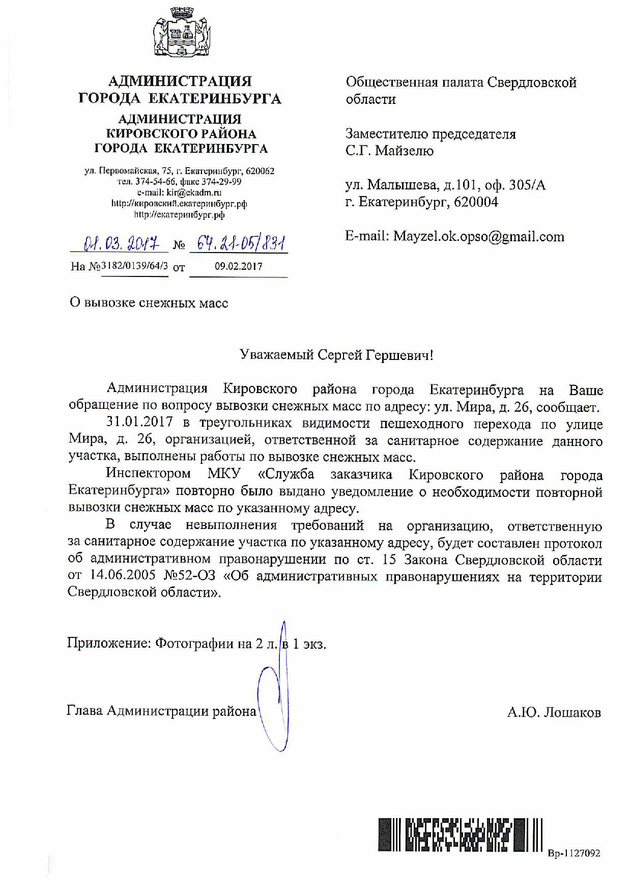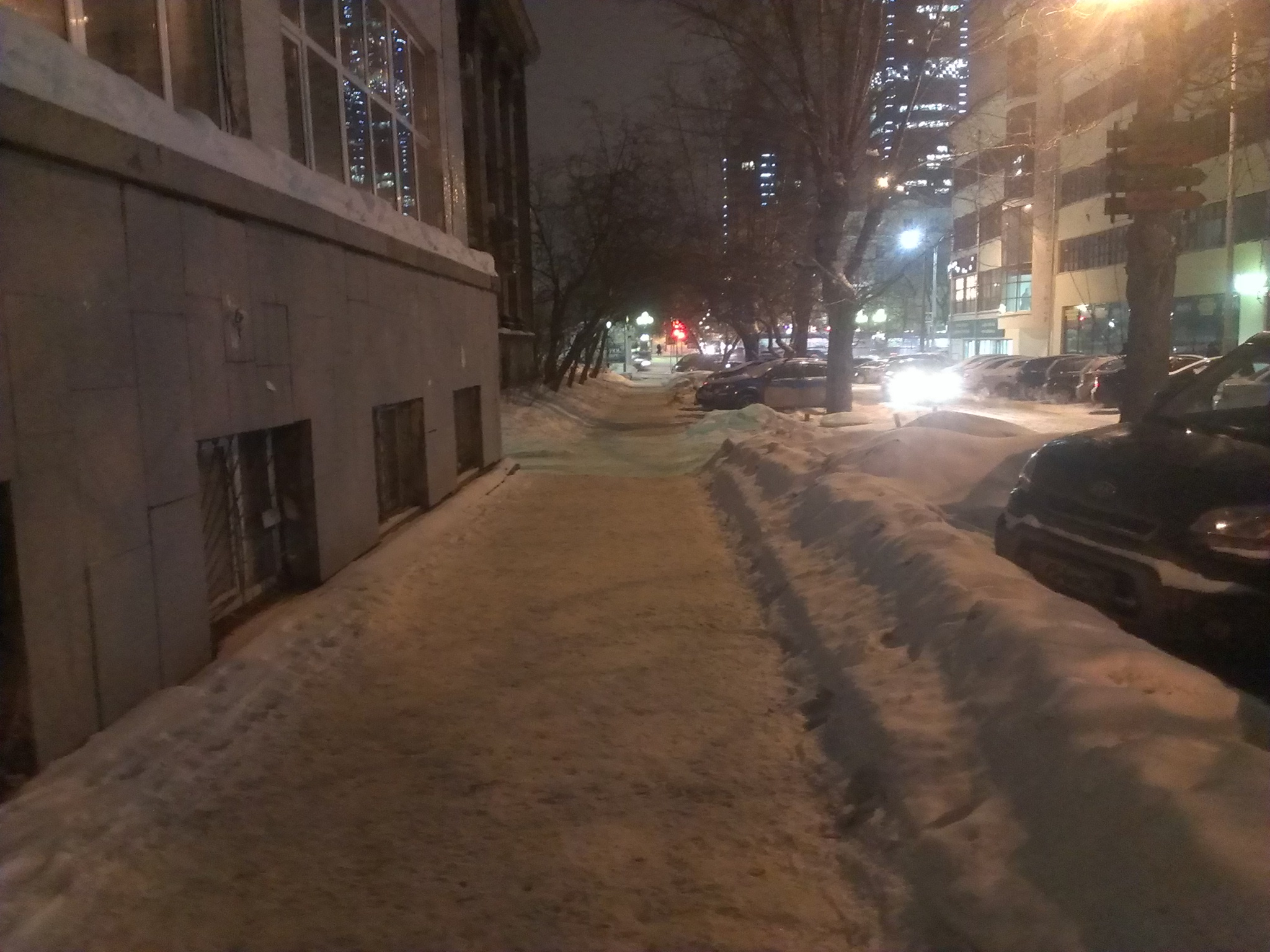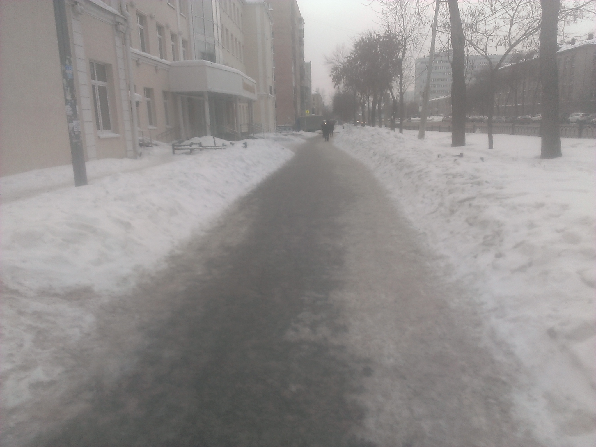 Номер жалобы:14250 Тип жалобы:Качество уборки снега на тротуарах Название объекта:Администрация Екатеринбурга Регион:Свердловская область Город:Екатеринбург Адрес:улица Челюскинцев, 27 Описание жалобы:Неудовлетворительно произведена уборка снега в районе домов 25 и 27 по улице Челюскинцев. Очистка выполнена не до покрытия. В центральной части пешеходной площади у выхода из подземного перехода и вдоль остановочного комплекса на автобусной остановке «Вокзал» складированы снежные массы, затрудняющие проход пешеходов. Не расчищены подходы к скамейкам в центре пешеходной площади у выхода из подземного перехода. Оставленный на тротуарах слой уплотнённого снега укатан до состояния льда. Статус: