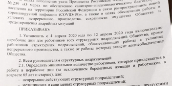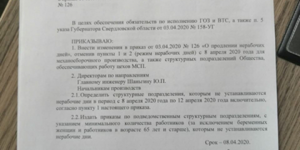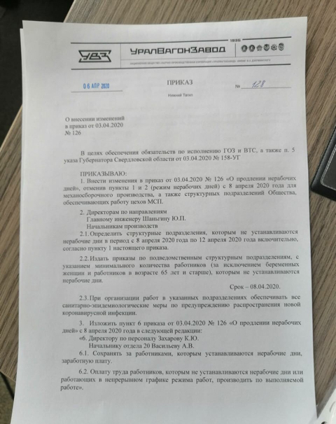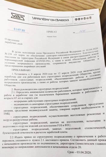 Номер жалобы:65220 Тип жалобы:Прочее Название объекта: Регион:Свердловская область Город:Нижний Тагил Адрес:Восточное шоссе, 28 Описание жалобы:Нарушение распоряжений Президента РФ и губернатора Свердловской области. А именно: заставляют выходить на рабочие места всех без исключения. На предприятии работает 40000 сотрудников. Один заражённый и произойдёт крах градообразующего предприятия. 115 цех например, даже не запущен полностью, а его прировнял Статус: