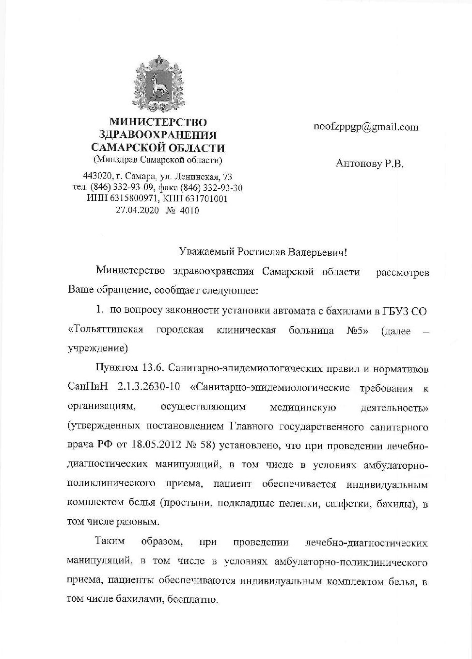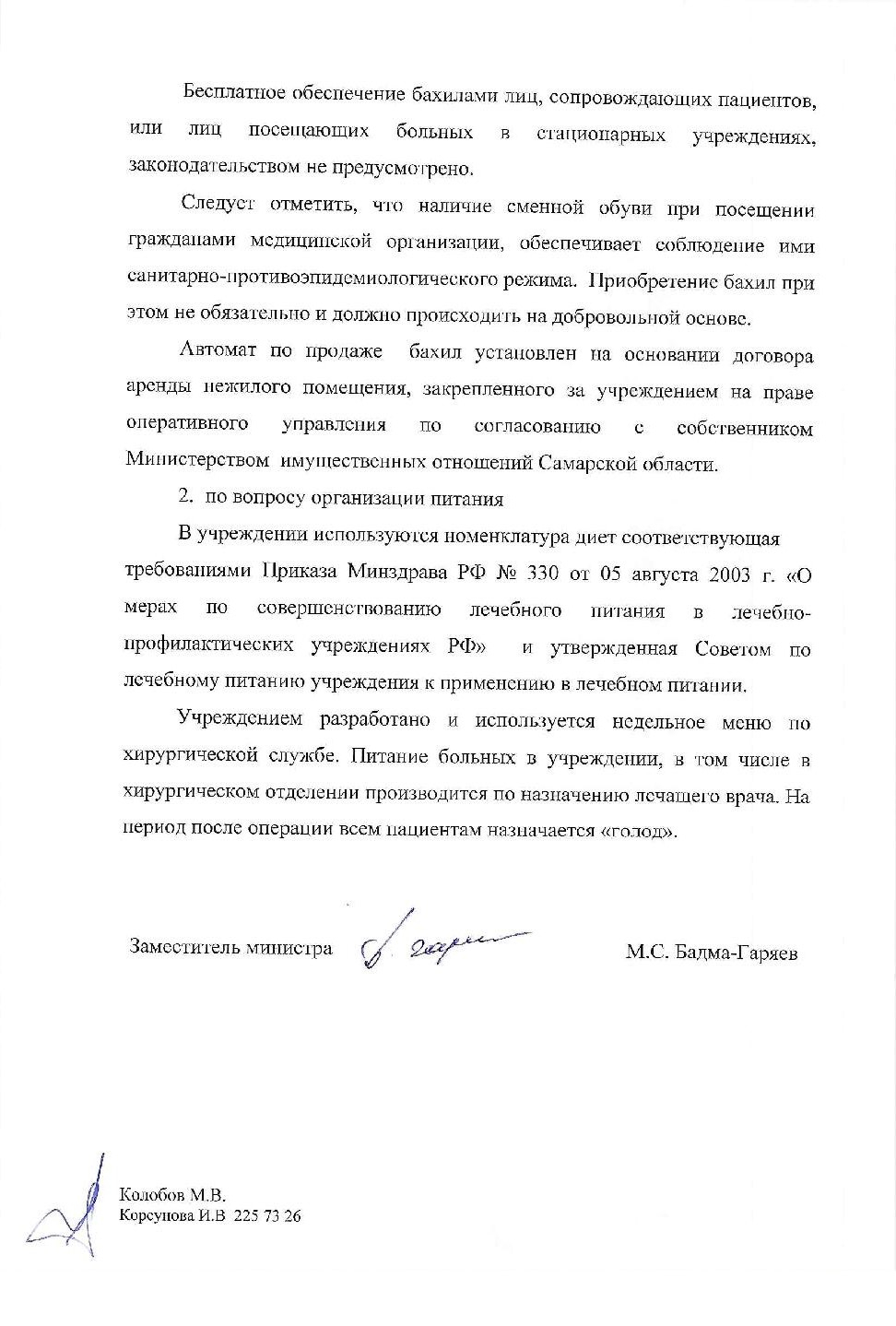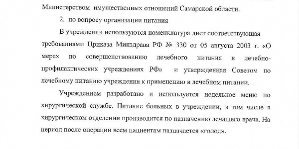 Номер жалобы:65240 Тип жалобы:Прочее Название объекта: Регион:Самарская область Город:Тольятти Адрес:бульвар Здоровья, 25 Описание жалобы:Сообщаю, что в здании Медгородка в корпусе № 810 установлен автомат с бахилами. Прошу проверить законность его установки. Также в Хирургическом отделении корпуса № 810 наблюдается масса нарушений: отсутствие меню в столовой при наличии стенда для размещения его, оставляет желать лучшего отношение медперсонала к пациентам, а также санитарки-пенсионерки. Всех пациентов без исключения кормят очень часто ячневой кашей, а ведь есть люди, которым категорически после той или иной операции НЕЛЬЗЯ ее есть! Например, после язвы 12-ти перстной кишки! Также при выписке хирурги не говорят своим пациентам, тем, кому это необходимо – носить бандаж. Есть медсестра по имени Олеся (по кличке НКВДшница) которая разговаривает с больными по солдатка. Прошу принять к ней все необходимые меры, к недопущению подобного поведения к больным! Статус: