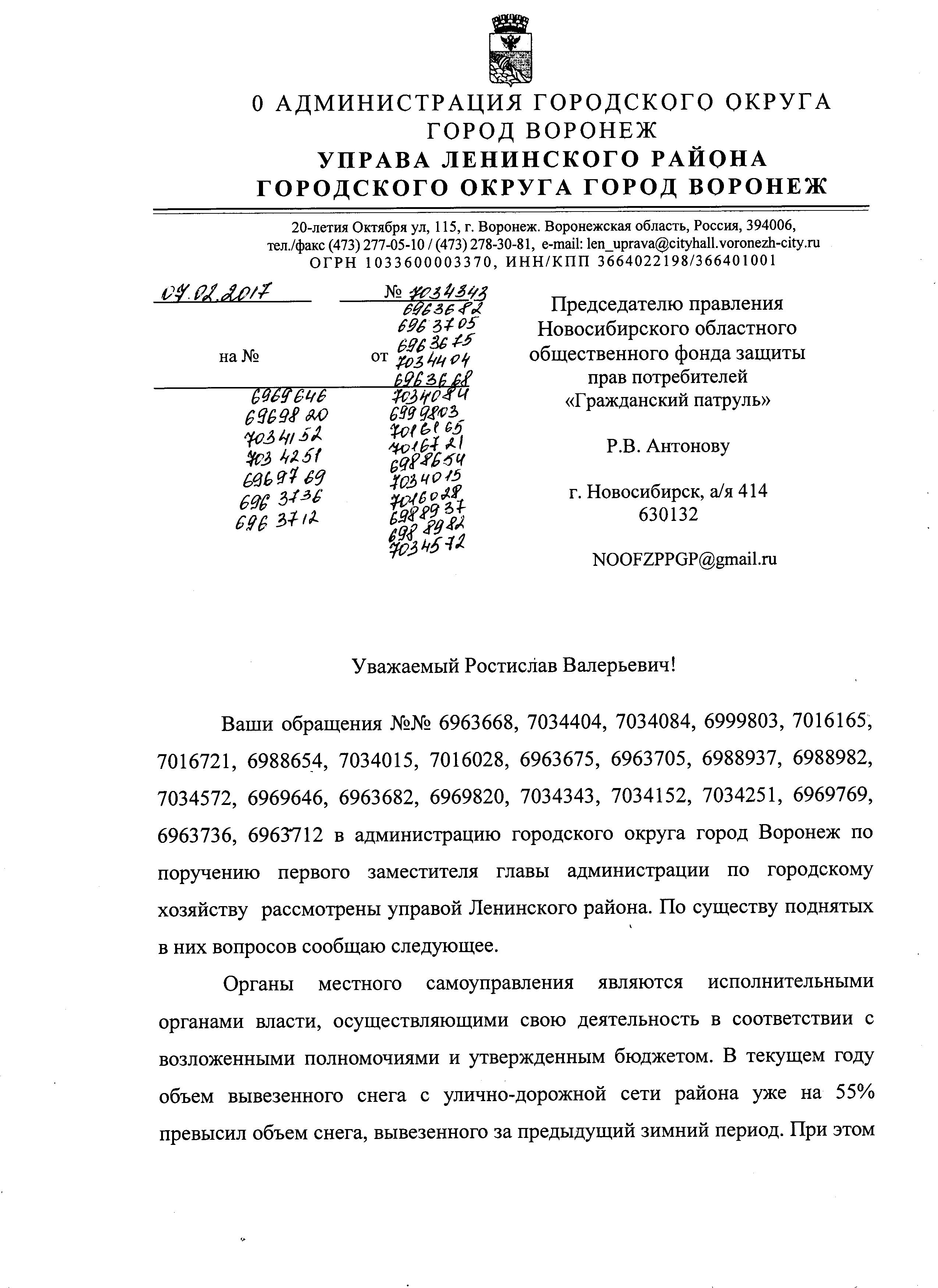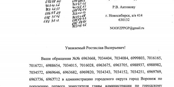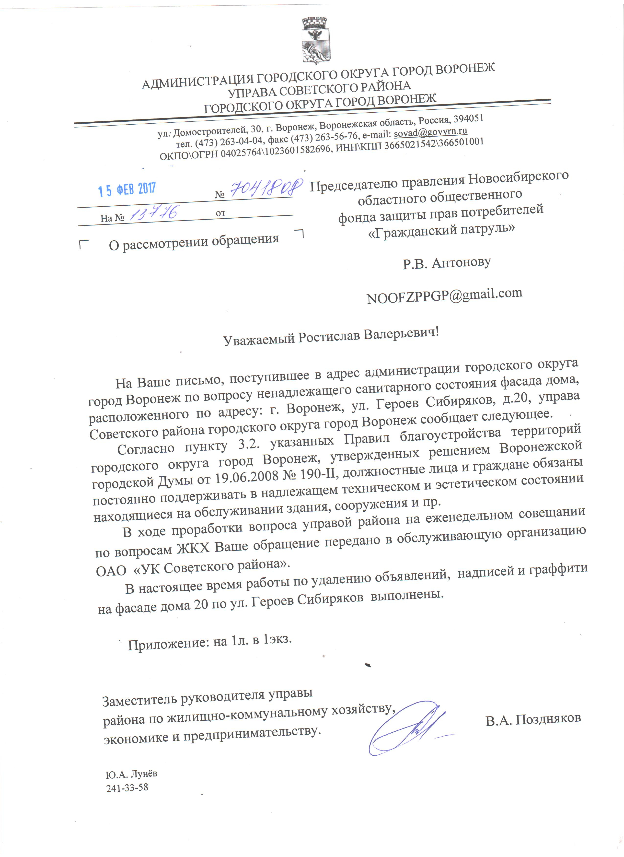 Номер жалобы:13776 Тип жалобы:Иные проблемы ЖКХ Название объекта:Ук Регион:Воронежская область Город:Воронеж Адрес:ул. Героев Сибиряков, 20 Описание жалобы:Обьяления на сткнах мкд Статус:
