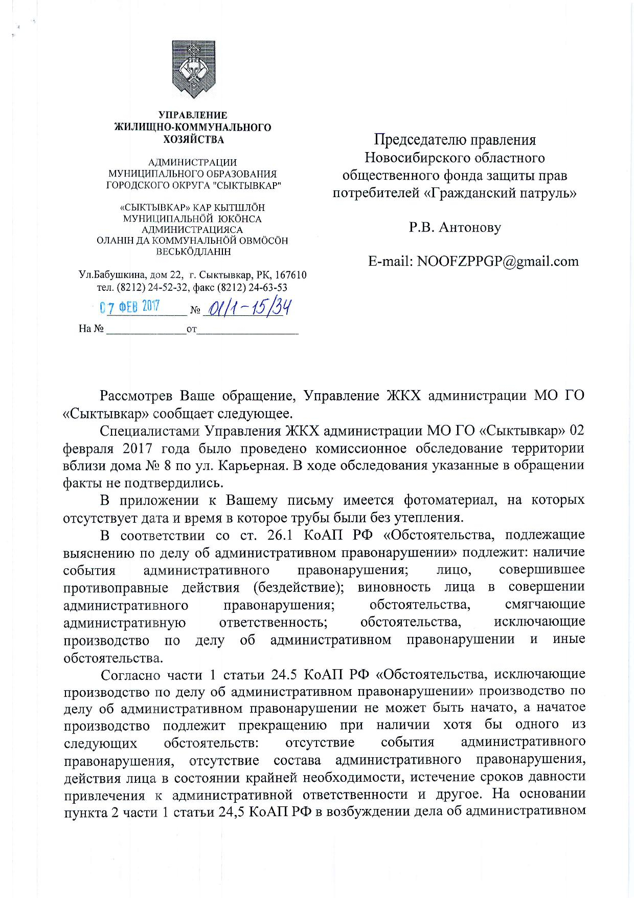 Номер жалобы:13541 Тип жалобы:Иные проблемы ЖКХ Название объекта:Открытые трубы Регион:Республика Коми Город:Сыктывкар Адрес:Карьерная ул., 8 Описание жалобы:Сыктывкар улица Карьерная дома 8-10. Открытые трубы! Удивительно, что они выстояли такой мороз! Статус: