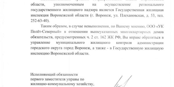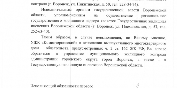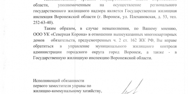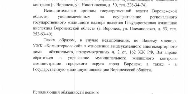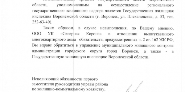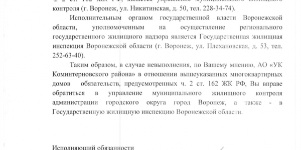 Номер жалобы:13441 Тип жалобы:Иные проблемы ЖКХ Название объекта:Ук Регион:Воронежская область Город:Воронеж Адрес:ул. Хользунова, 54 Описание жалобы:Обьявленмя на мкд Статус: