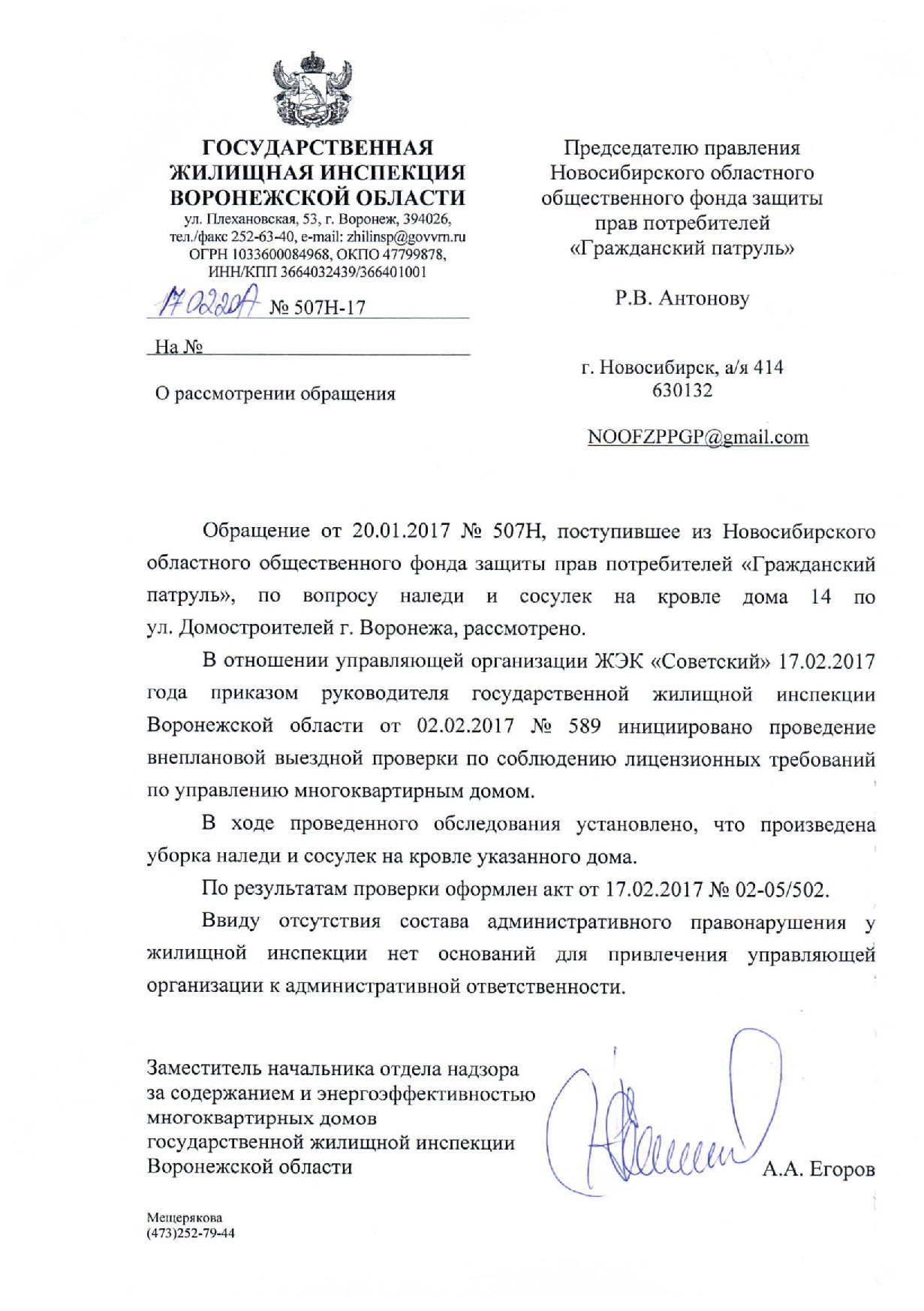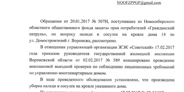 Номер жалобы:13081 Тип жалобы:Иные проблемы ЖКХ Название объекта:Ук Регион:Воронежская область Город:Воронеж Адрес:ул. Домостроителей, 14 Описание жалобы:Ветхие балконы и огромные наледи Статус: