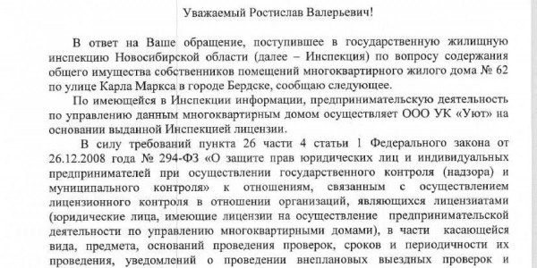 Номер жалобы:12576 Тип жалобы:Иные проблемы ЖКХ Название объекта:УК "Уют" Регион:Новосибирская область Город:Бердск Адрес:ул. Маркса, 62 Описание жалобы:Топит стены в секции на всех этажах плесень сырость вздутая штукатурка Статус: