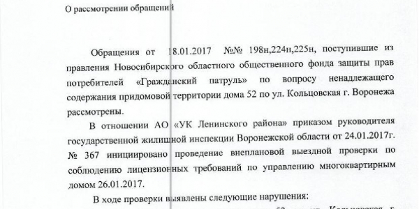 Номер жалобы:12737 Тип жалобы:Иные проблемы ЖКХ Название объекта:Ук Регион:Воронежская область Город:Воронеж Адрес:Московский просп., 68 Описание жалобы:Обьявления в непол. Месте Статус: