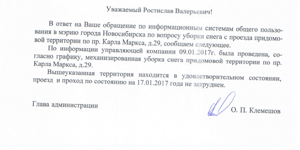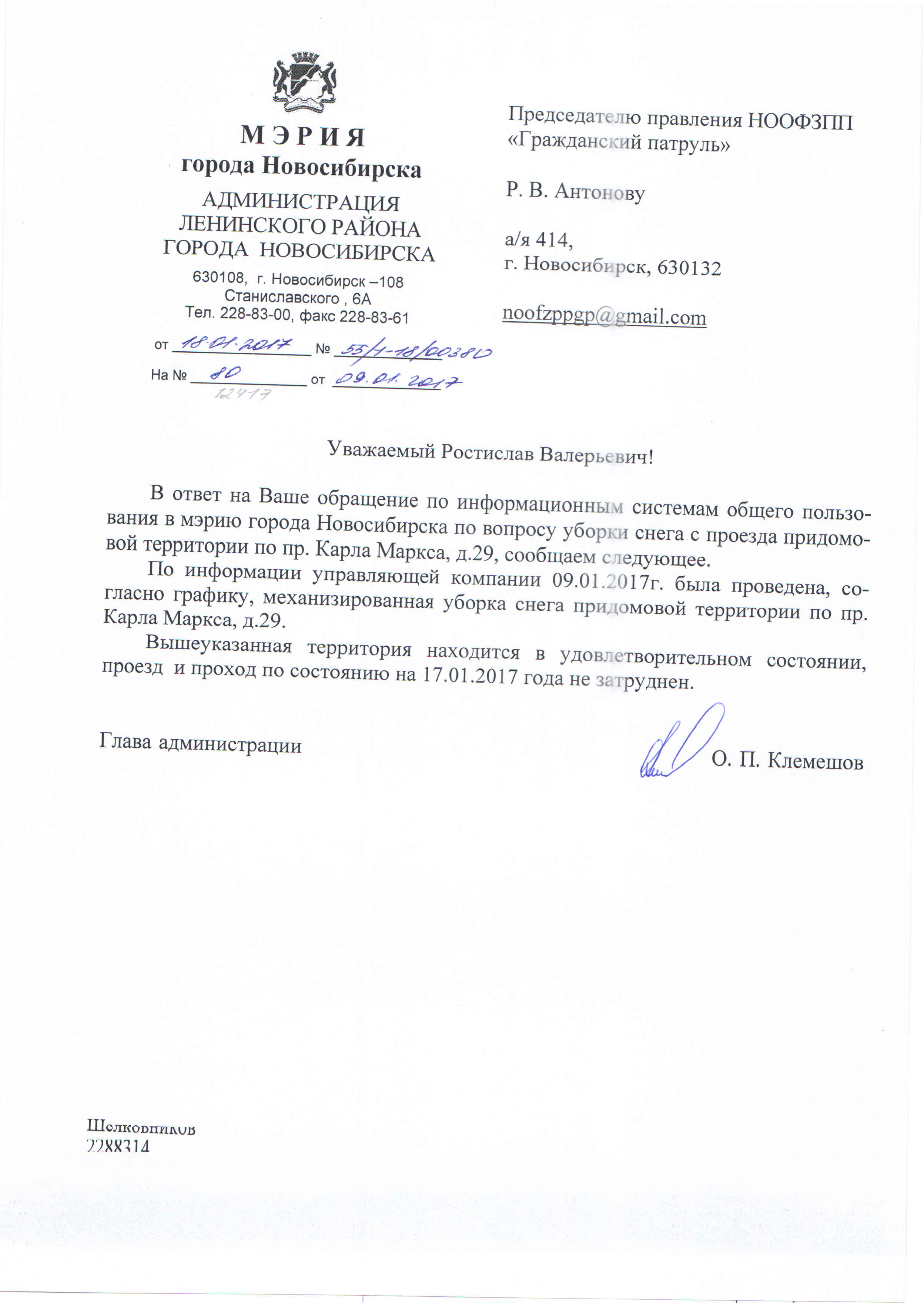 Номер жалобы:12417 Тип жалобы:Иные проблемы ЖКХ Название объекта:Ук Регион:Новосибирская область Город:Новосибирск Адрес:пр. Карла Маркса, 29 Описание жалобы:Гололед Статус: