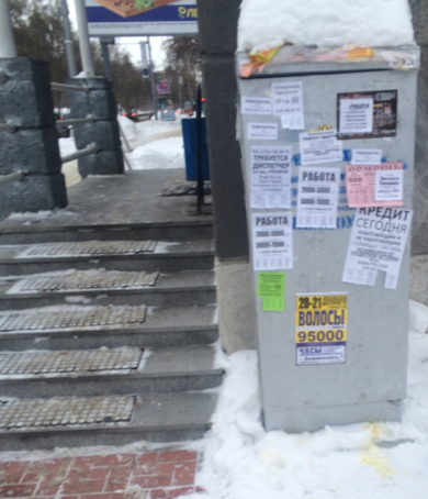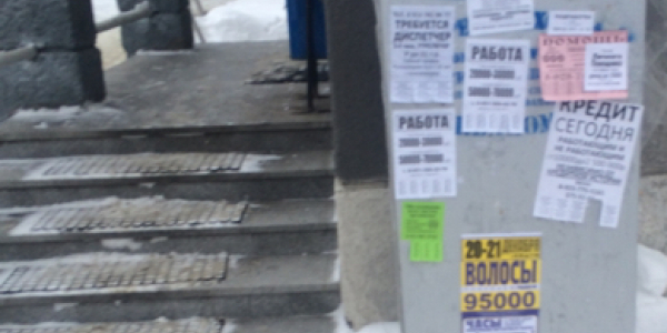 Номер жалобы:11779 Тип жалобы:Иные проблемы ЖКХ Название объекта:Общественная Организация Регион:Воронежская область Город:Воронеж Адрес:Ростовская ул., 58/17 Описание жалобы:Наклейки на столбах. А не на досках объявлений, как положено Статус:
