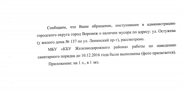 Номер жалобы:11780 Тип жалобы:Иные проблемы ЖКХ Название объекта:Общественная Организация Регион:Воронежская область Город:Воронеж Адрес:ул. Остужево Описание жалобы:Мусор валяется на Остужево Статус: