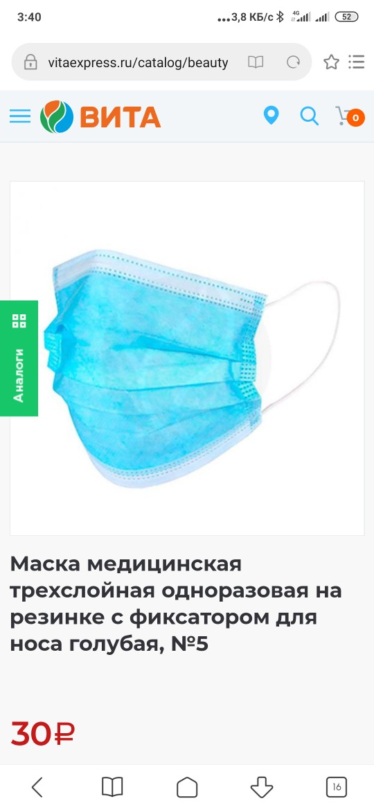 Номер жалобы:65022 Тип жалобы:Прочее Название объекта: Регион:Саратовская область Город:Саратов Адрес:Саратов, Московская улица, 61 Описание жалобы:Масок нет в аптеках Саратова, так ещё на сайте Вита Экспресс стоит цена в 30 рублей за одну маску Статус: