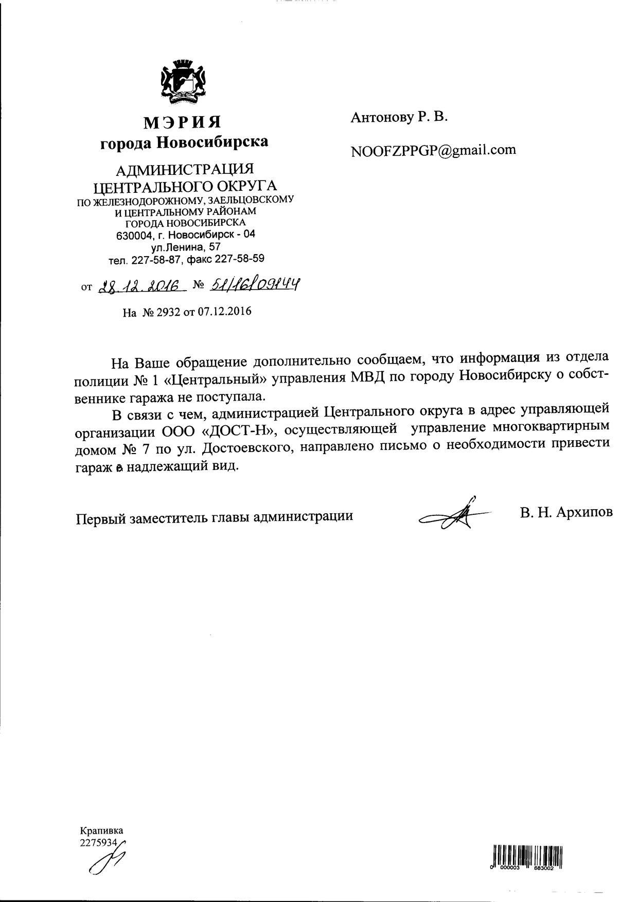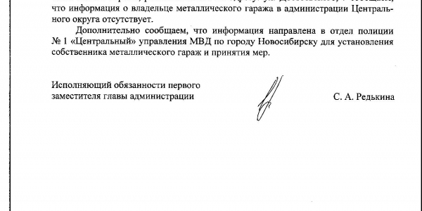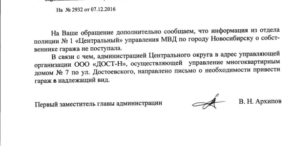 Номер жалобы:11620 Тип жалобы:Иные проблемы ЖКХ Название объекта:Управляющая Компания Город:Новосибирск Адрес:Новосибирск, улица Достоевского, 7 Описание жалобы:Рядом гараж в объявлениях Статус: