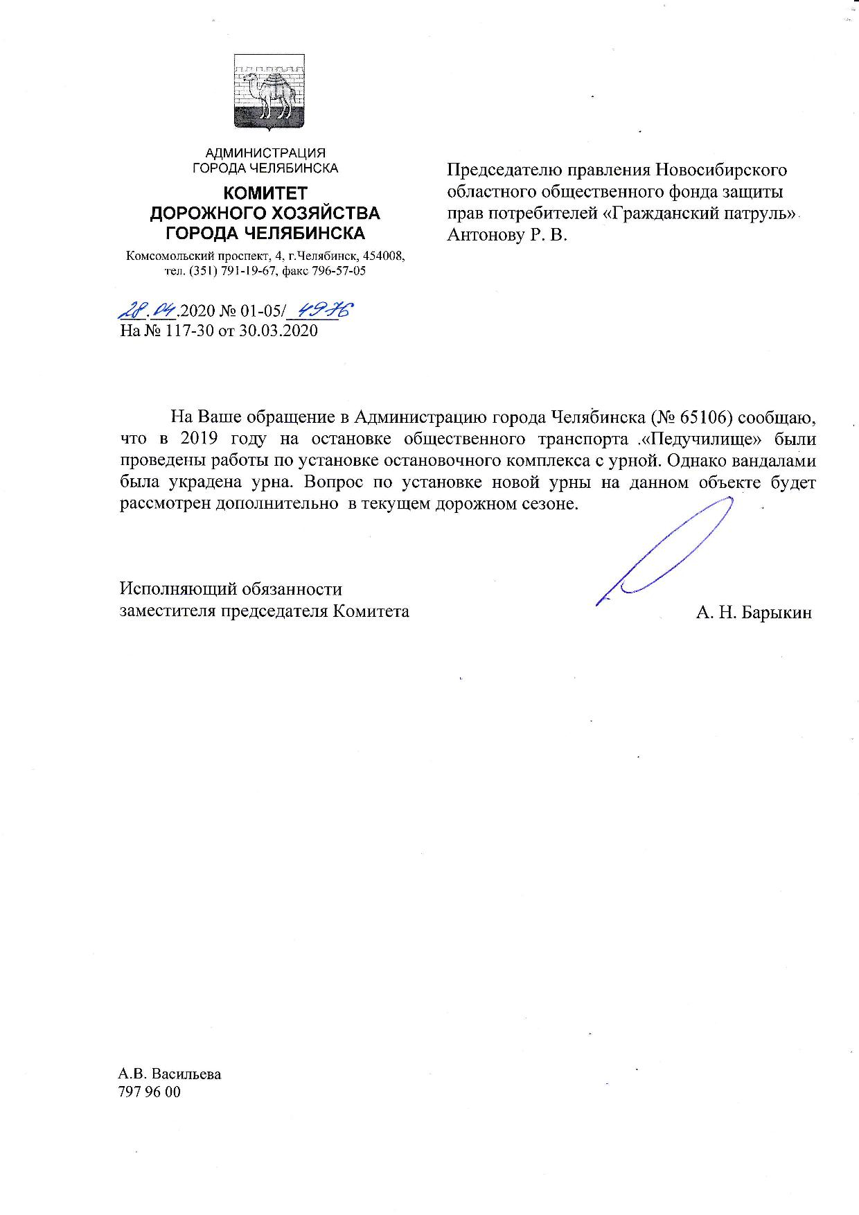 Номер жалобы:64979 Тип жалобы:Прочее Название объекта: Регион:Челябинская область Город:Челябинск Адрес:улица Молодогвардейцев, 43 Описание жалобы:Почему на новой остановке возле пед.училища до сих пор нет урны? Статус: