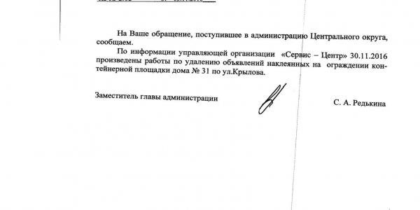 Номер жалобы:10518 Тип жалобы:Иные проблемы ЖКХ Название объекта:Управляющая Компания Город:Новосибирск Адрес:Новосибирск, улица Крылова, 15 Описание жалобы:реклама в неположенном месте Статус: