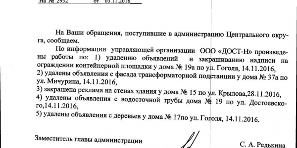 Номер жалобы:10516 Тип жалобы:Иные проблемы ЖКХ Название объекта:Управляющая Компания Город:Новосибирск Адрес:Новосибирск, улица Гоголя, 32 Описание жалобы:Объявления на хоз корпусе Статус: