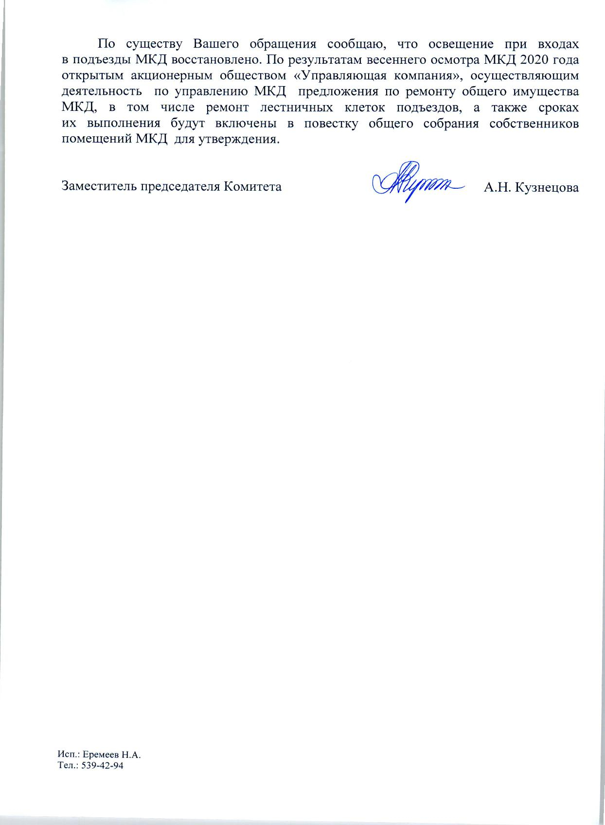 Номер жалобы:63416 Тип жалобы:Иные проблемы ЖКХ Название объекта: Регион:Свердловская область Город:Каменск-Уральский Адрес:Каменск-Уральский, улица Калинина, 58 Описание жалобы:После пожара в четвертом подъезде дома по улице Калинина д. 58 в подъезде стало плохо работать освещение. Плафоны ламп закоптились и требуют замены. Прошу обеспечить замену приборов освещения на новые и привести освещение подъезда в соответствие санитарным нормам Статус: