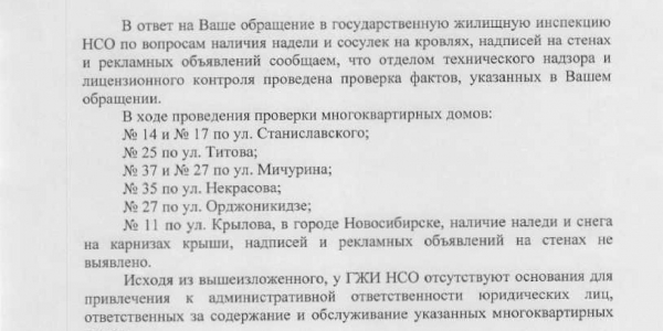 Номер жалобы:10311 Тип жалобы:Иные проблемы ЖКХ Название объекта:Управляющая Компания Город:Новосибирск Адрес:Новосибирск, улица Гоголя, 14 Описание жалобы:Объявления на доме Статус: