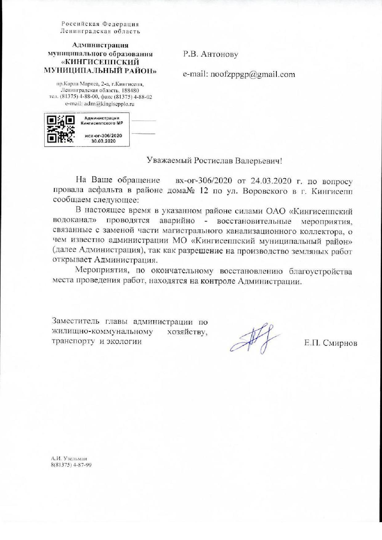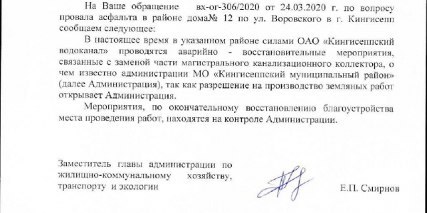 Номер жалобы:64768 Тип жалобы:Прочее Название объекта: Регион:Ленинградская область Город:Кингисепп Адрес:улица Воровского, 12 Описание жалобы:Асфальт проваливается. Грязь лужи. Как людям ходить. Нечего не сделано до сих пор. Прям напротив прокуратуры Статус: