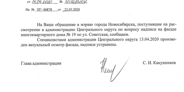 Номер жалобы:64762 Тип жалобы:Прочее Название объекта: Регион:Новосибирская область Город:Новосибирск Адрес:Советская улица, 19 Описание жалобы:Надписи на стене Статус: