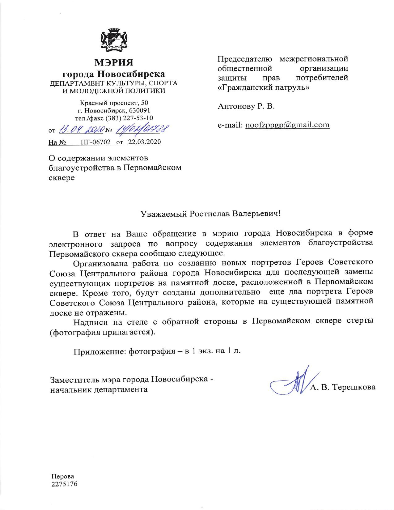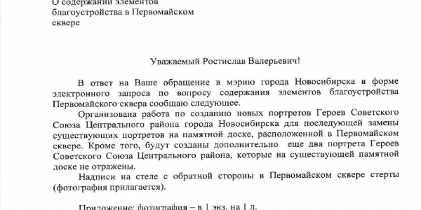 Номер жалобы:64699 Тип жалобы:Прочее Название объекта: Регион:Новосибирская область Город:Новосибирск Адрес:Первомайский сквер Описание жалобы:Надписи на стелле, с обратной стороны, в Первомайском сквере Статус: