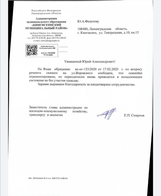 Номер жалобы:64733 Тип жалобы:Прочее Название объекта: Регион:Ленинградская область Город:Кингисепп Адрес:Кингисепп, улица Воровского, 19 Описание жалобы:Ремонт скамеек в городе. Это называется работы сделаны. Статус: