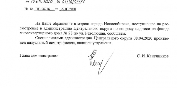 Номер жалобы:64704 Тип жалобы:Прочее Название объекта: Регион:Новосибирская область Город:Новосибирск Адрес:улица Революции, 32 Описание жалобы:Надписи, работа сомнительного рода. Со стороны улицы депутатская Статус: