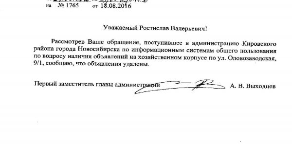 Номер жалобы:8083 Тип жалобы:Иные проблемы ЖКХ Название объекта:Управляющая Компания Город:Новосибирск Адрес:Новосибирск, Оловозаводская улица, 14/3 Описание жалобы:объявления на столбах у остановки кинотеатр Обь оловозаводская 14/3 Статус: