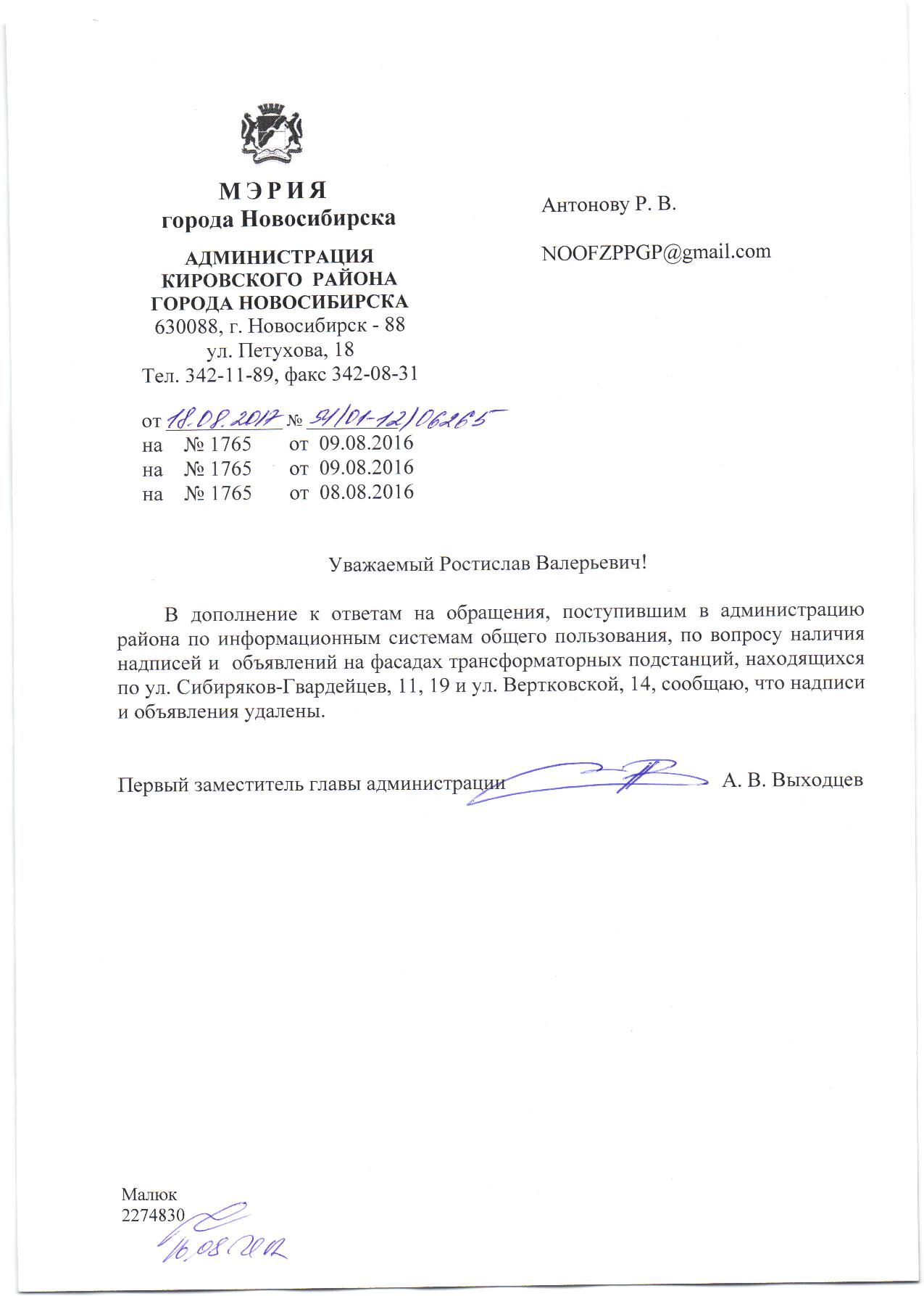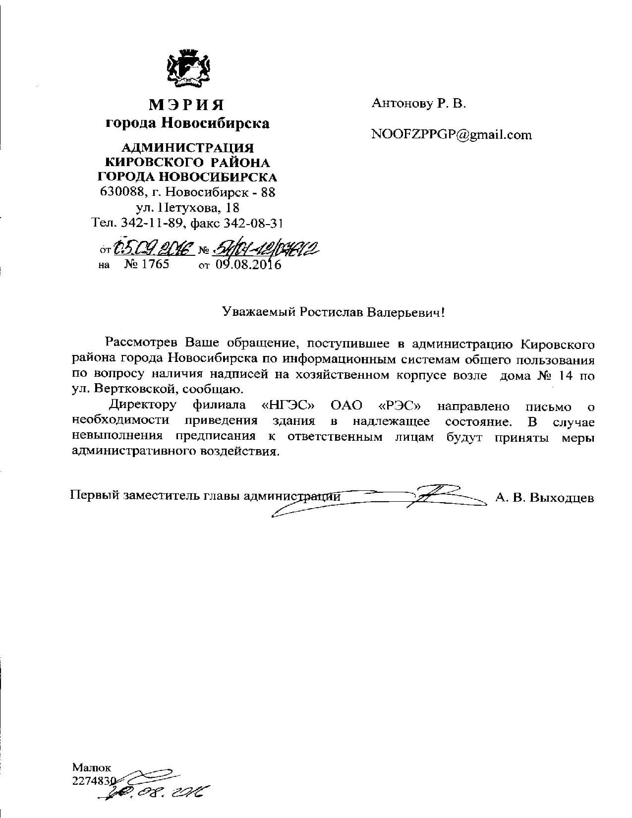 Номер жалобы:7700 Тип жалобы:Иные проблемы ЖКХ Название объекта:Управляющая Компания Город:Новосибирск Адрес:Новосибирск, улица Вертковская, 14 Описание жалобы:Надписи на хоз корпусе Статус: