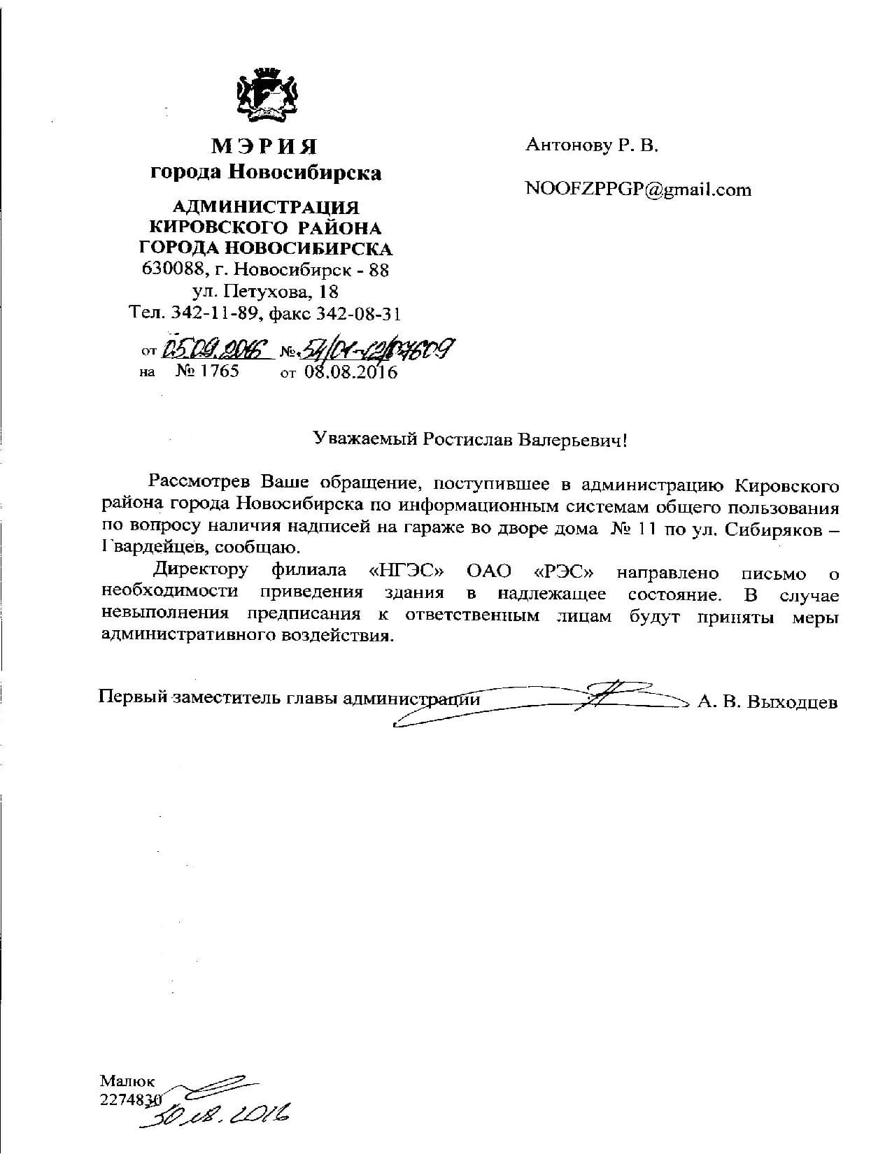 Номер жалобы:7680 Тип жалобы:Иные проблемы ЖКХ Название объекта:Управляющая Компания Город:Новосибирск Адрес:Новосибирск, улица Сибиряков-Гвардейцев, 11 Описание жалобы:Надписи на Гараже Статус: