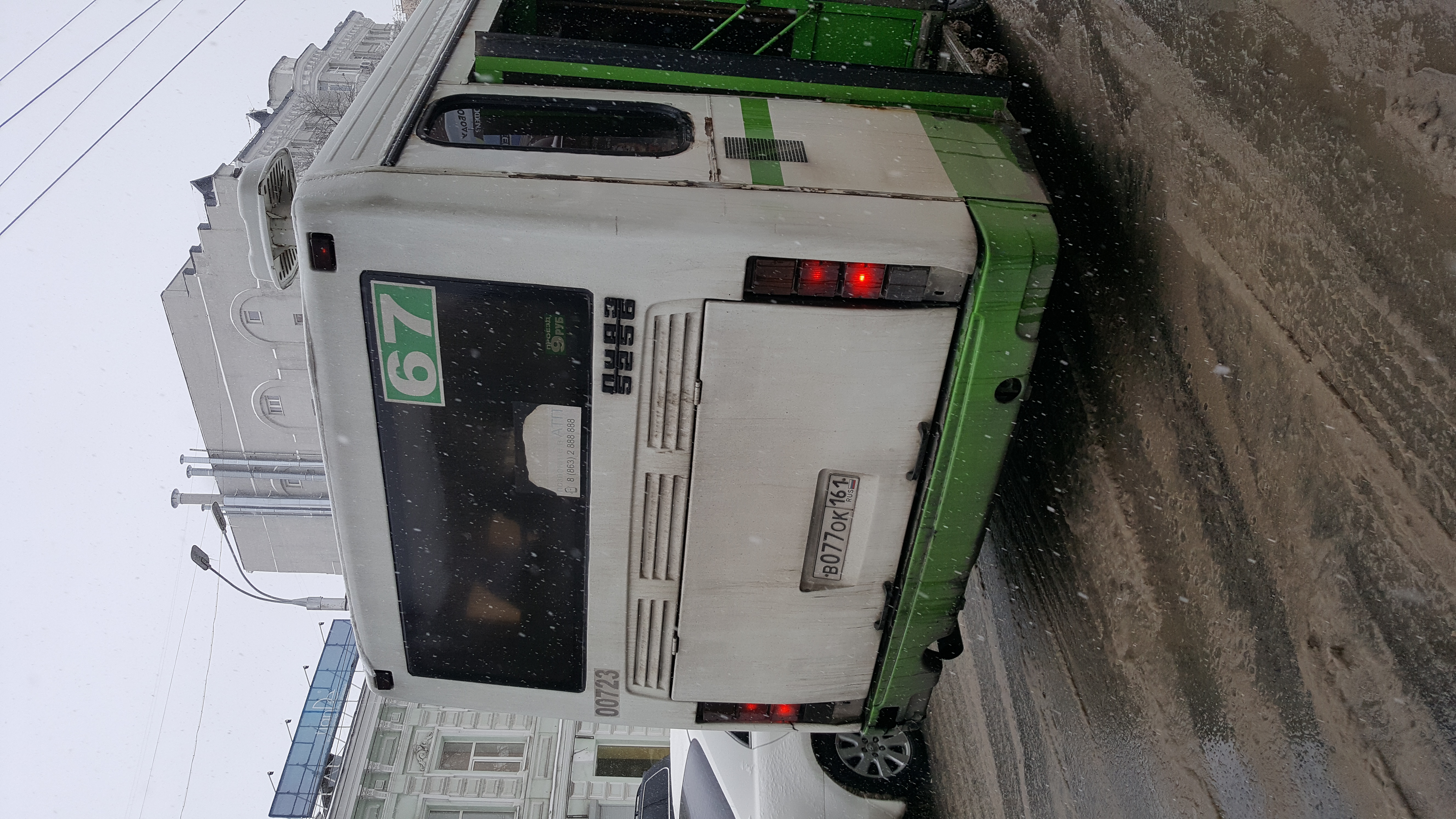 13.02.2018 автобус 67, следующий с западного микрорайона, стоял около 10 минут на остановке Ворошиловский. Даже после моего замечания, водитель поехал только минуты через 3. Автобус В077ОК