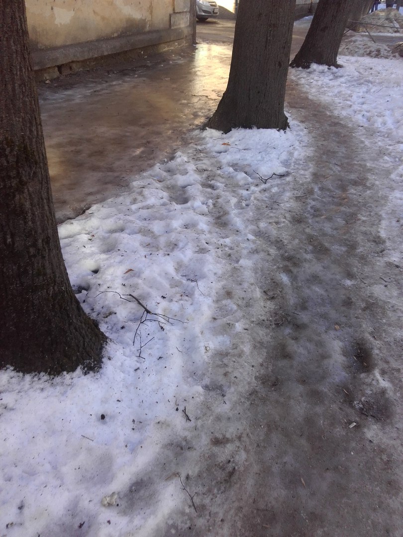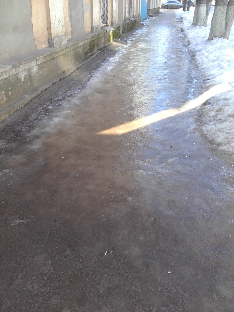 На участке ул. Комсомольская, с пр.Октябрьский и до ул.Пушкина( со стороны отделений мвд и фсб) не следят за тротуаром..Всю зиму-наледь,очень скольско..Люди обходят по газонной части и даже по дороге-проезжей части.