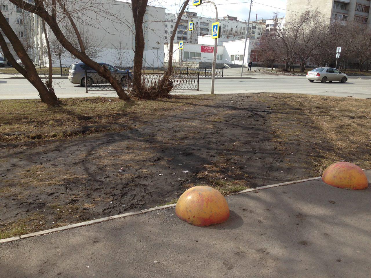 Возле здания по улице Восточная 35, необходимо сделать пешеходную дорожку, которая ведет от пешеходного перехода до гипермаркета "Мегамарт".